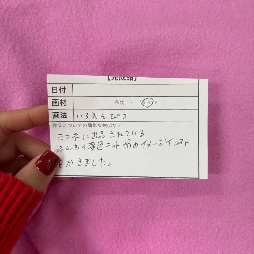 ハンドメイド作品は一点ごとに個性があるため、利用者さんは「再現したい特徴」と「イラストとして読み取りやすく表現する部分」を切り分けながら進めます。