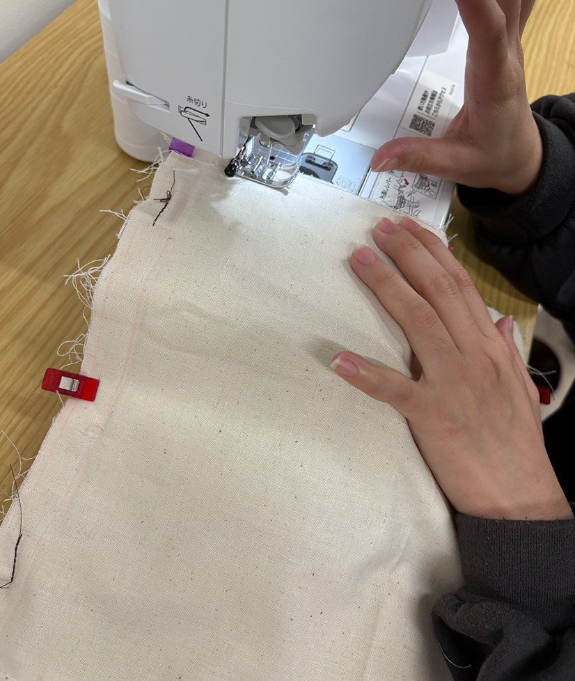 「仮止めから縫い合わせまで順を追って進められるので、今日どこまで進むかを考えながら取り組めています。ミシンを使うのは初めてでしたが、繰り返すうちに操作がわかるようになってきました。」