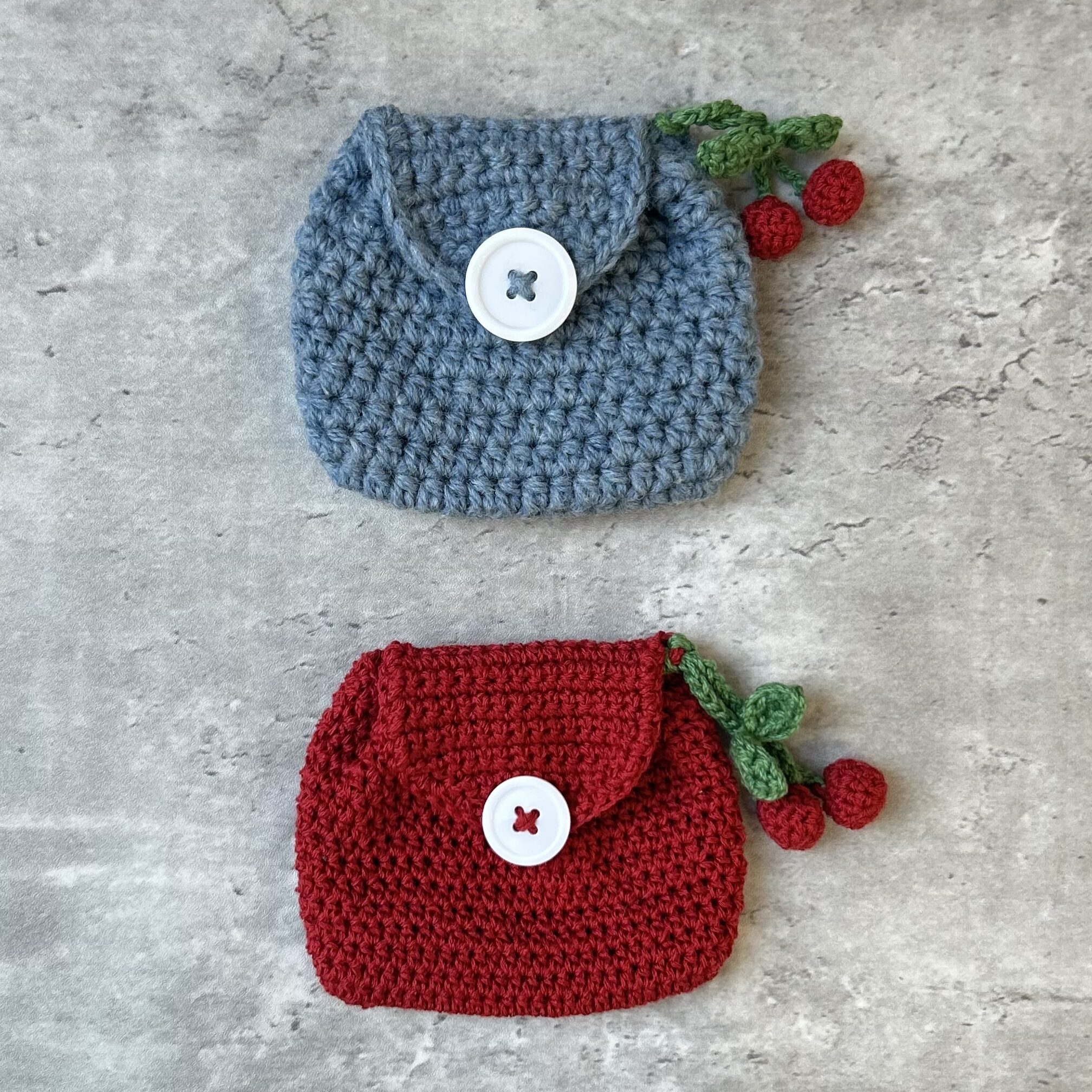 今回ご紹介するのは、かぎ編みで丁寧に仕上げた小さなポーチ2点。どちらも、立体的に編まれたさくらんぼのチャームがゆらゆらと揺れる、遊び心たっぷりの小物入れです。