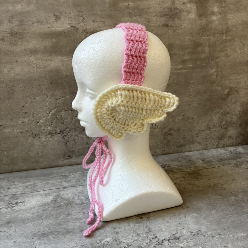 完成した手編みの耳当てをマネキンに着用させ、正面から全体のバランスを確認します。編み目の均一さや紐の位置など、制作工程の成果が反映される場面です。就労継続支援A型事業所のものづくり業務では、完成後の見え方を確認する工程も大切な仕事として扱われています。