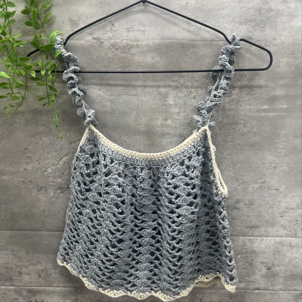 別の利用者さんが制作した大人ガーリーな手編みビスチェ
