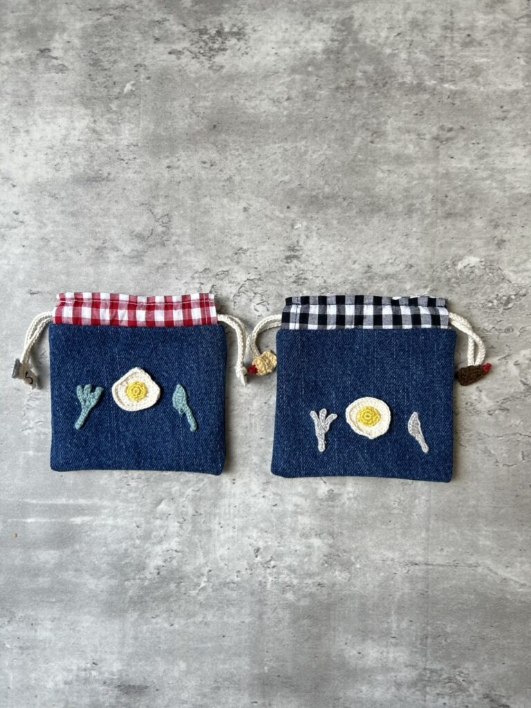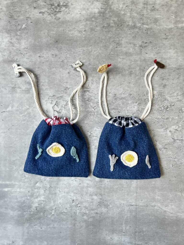 この“目玉焼きモチーフ”デニムミニポーチは、現在ハンドメイドマーケット minne にて販売中です。
