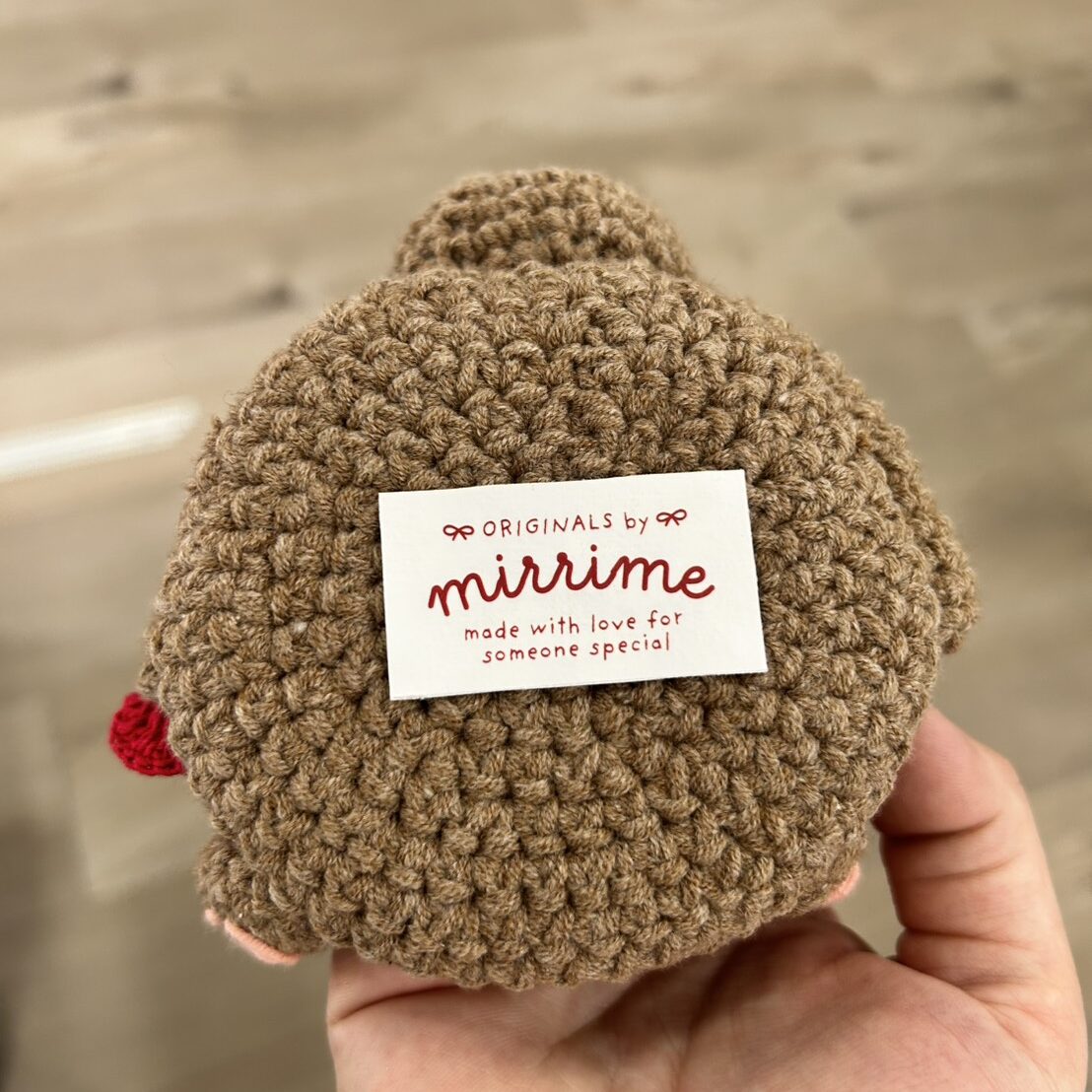 裏面には、Mirrime(ミライム)オリジナルの布タグをあしらい、ブランドとしての統一感と特別感も大切にしています。