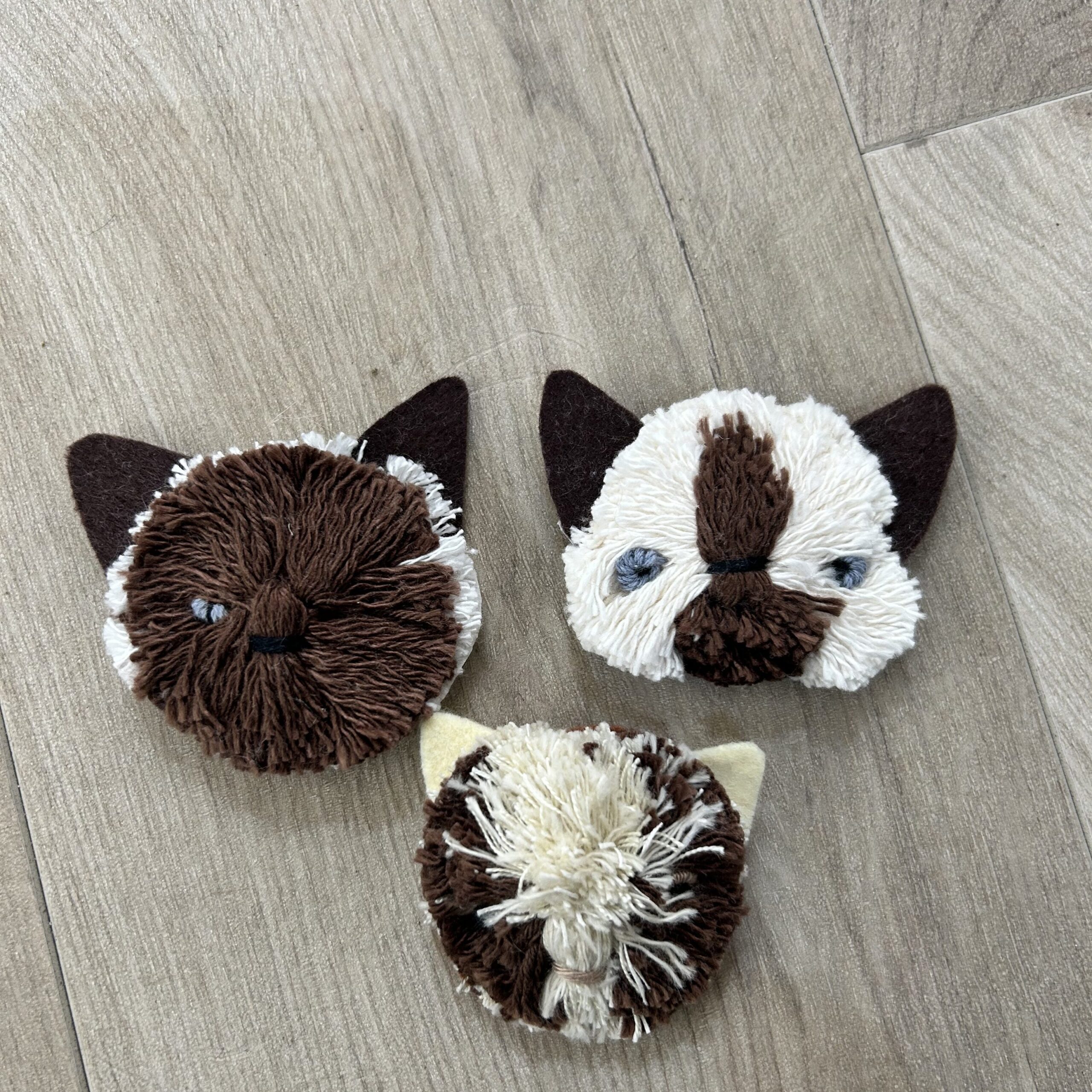 毛糸を使って作られた、ふわふわとした立体感が魅力のブローチです。