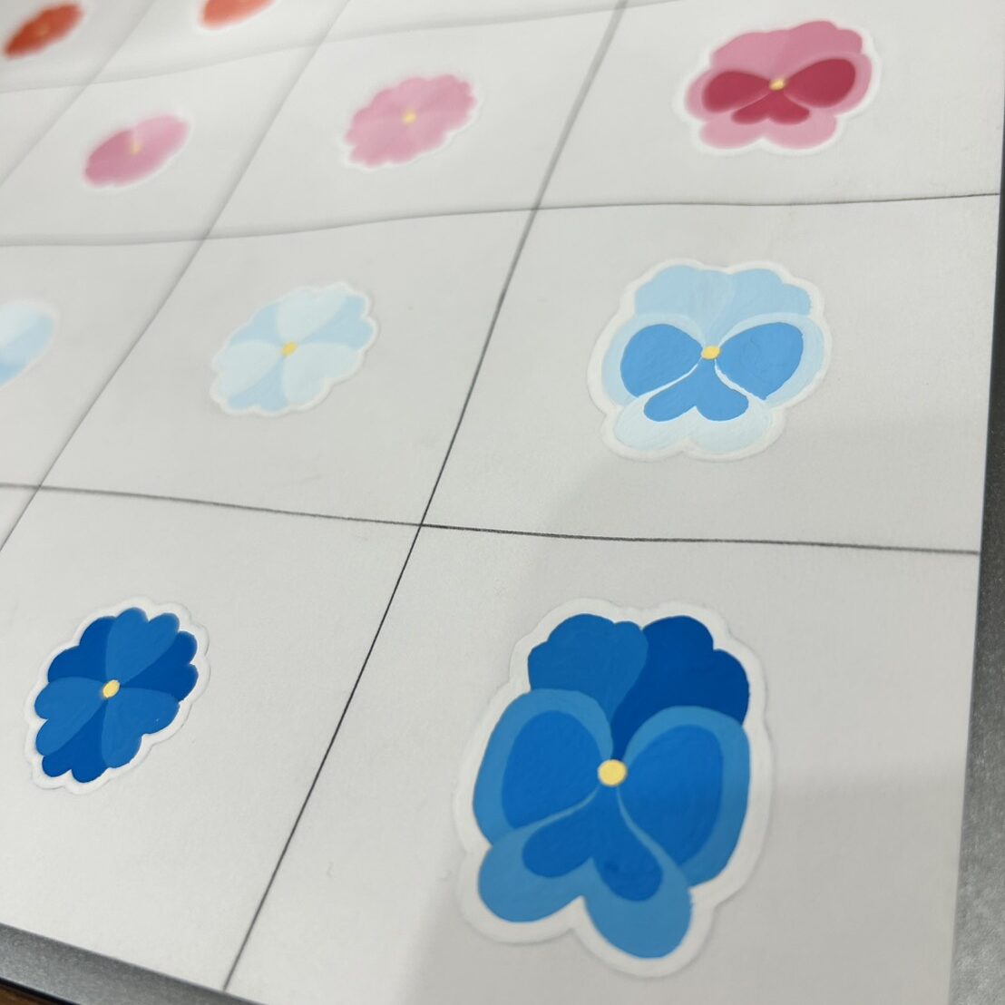 絵具がにじまないよう、何度も丁寧に重ね塗りを行い、花びら一枚一枚に立体感が生まれるよう工夫されています。